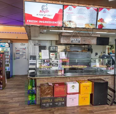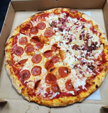 Yes! You can order for quick pickup or use local delivery services to enjoy our pizza at home.